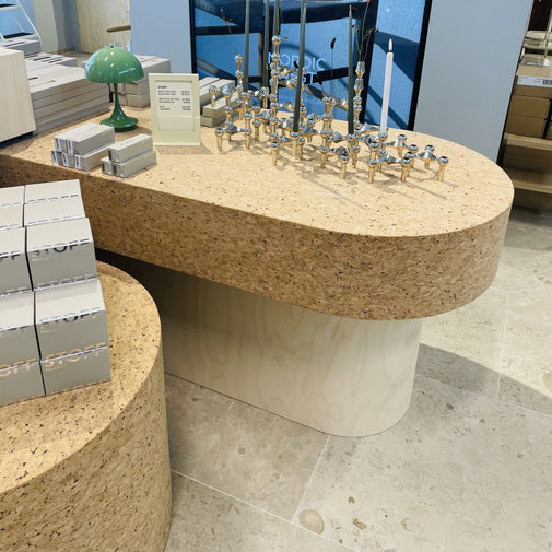 TIPP: Mit Korktapete können auch Möbelstücke beklebt werden, so wie hier in einem Hamburger Einrichtungsladen.